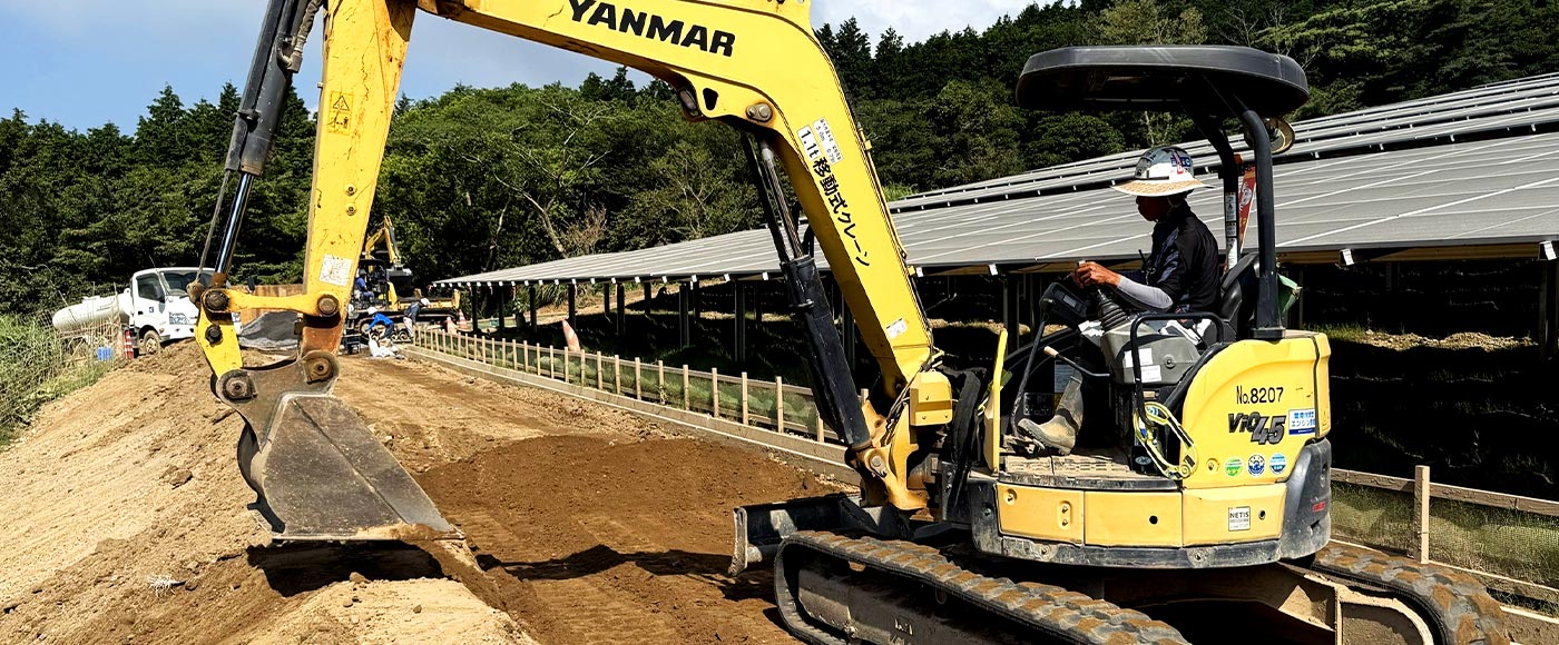 当社は土木工事事業を中心に展開しています。民間分野では、造成工事、ガス管敷設工事、消防水利工事、太陽光発電所の造成工事などを手がけています。公共分野では、河川工事や用水路工事など、地域インフラの整備にも積極的に取り組んでいます。豊富な経験と確かな技術力で、多様なニーズに柔軟にお応えできる体制が当社の強みです。今後も安全・高品質な施工を通じて、地域社会の発展に貢献してまいります。